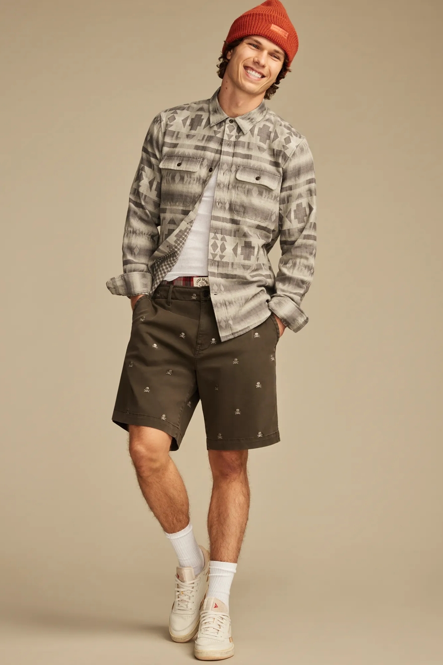 9" embroidered stretch twill short