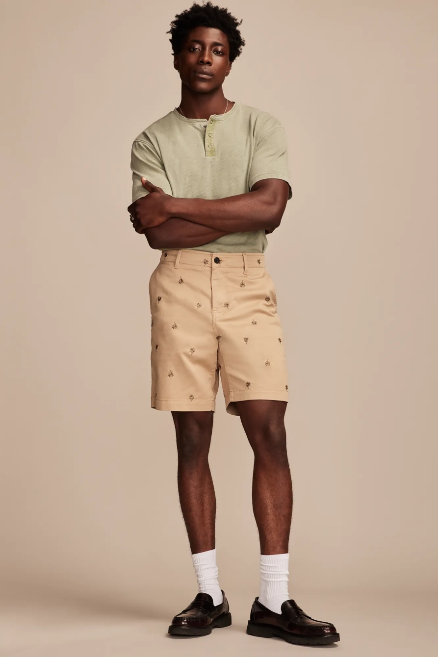 9" embroidered stretch twill short