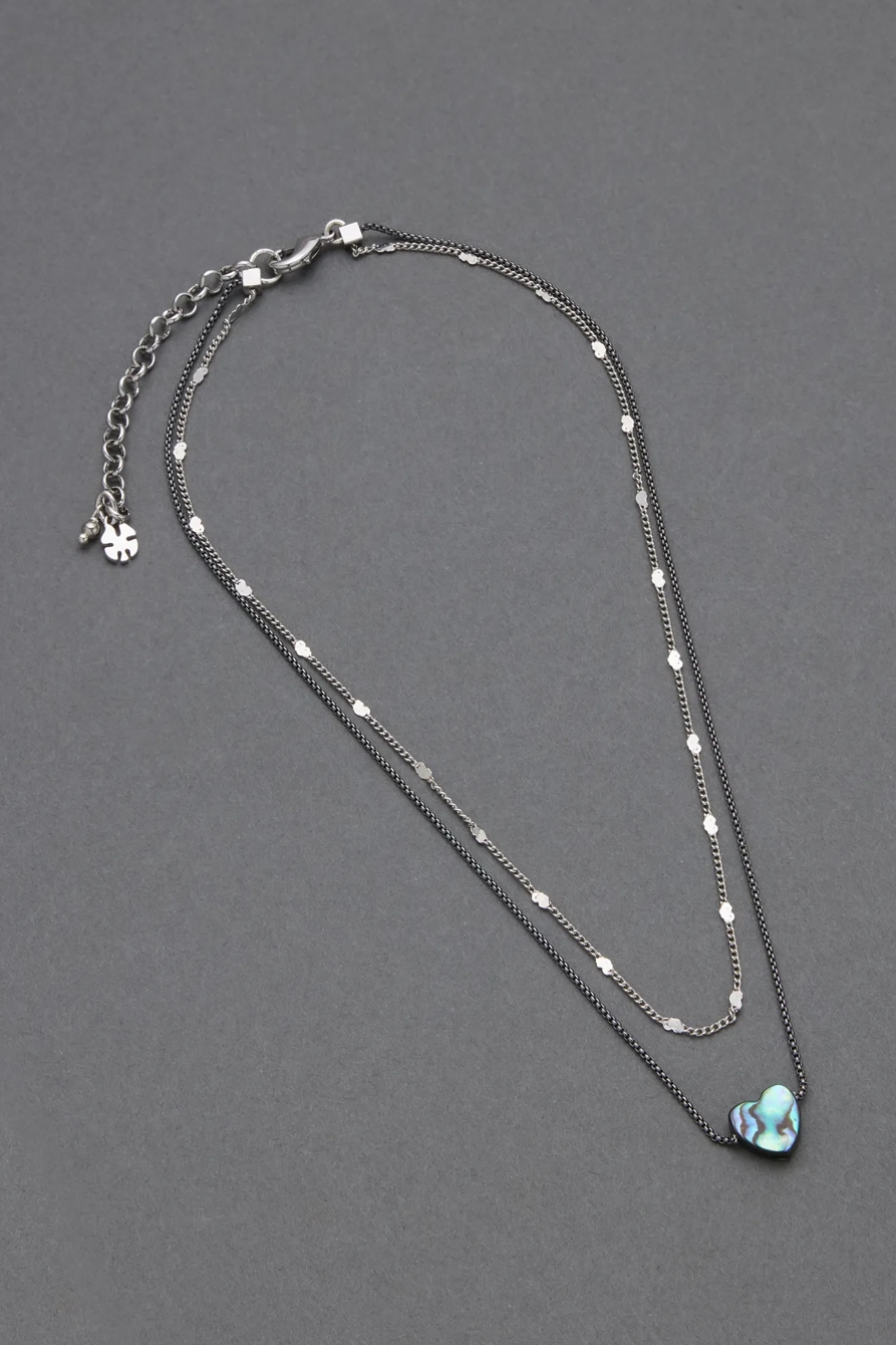 abalone heart ox layer necklace
