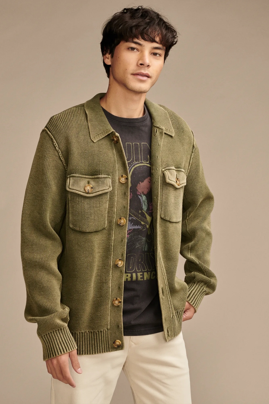acid wash button through sweater cardigan