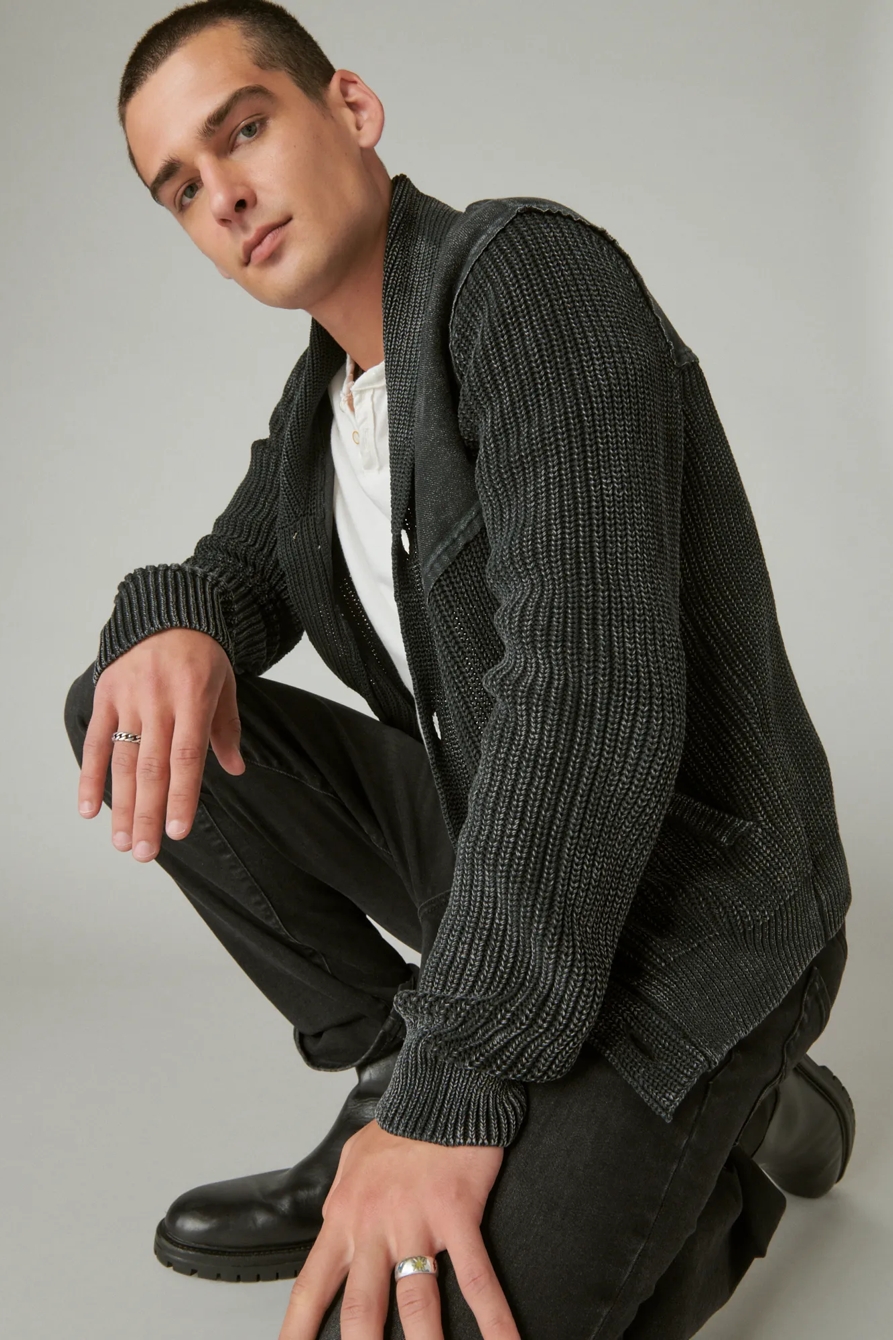 acid wash patchwork cardigan