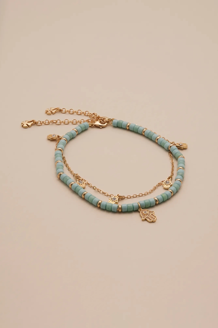 beaded and celestial chain anklet set
