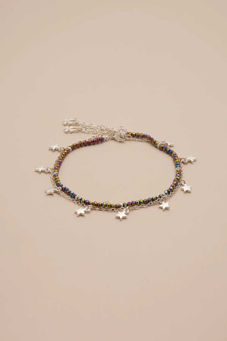 beaded and star chain anklet set