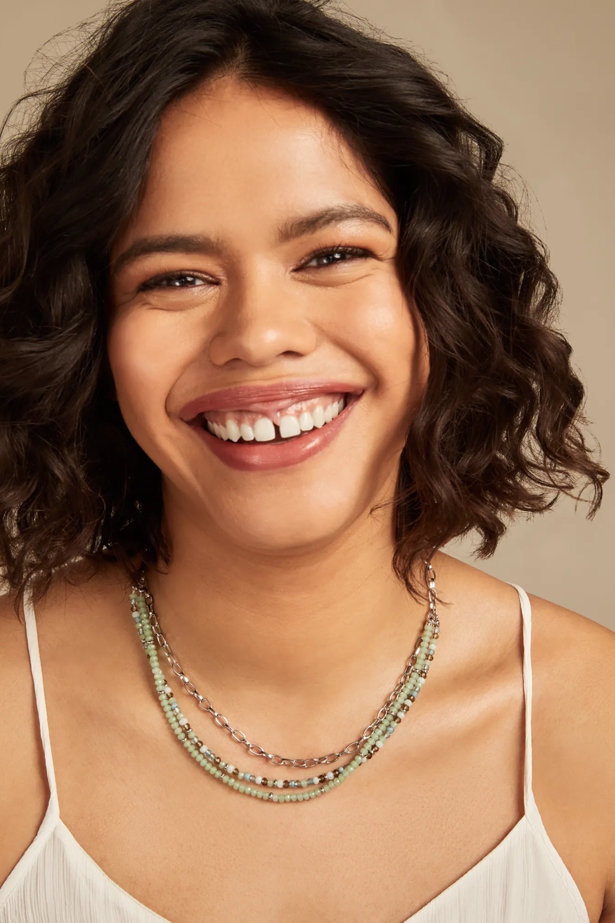 beaded layered silver necklace