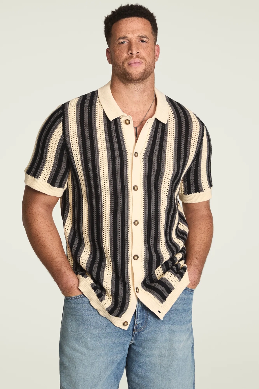 big and tall stripe button through sweater