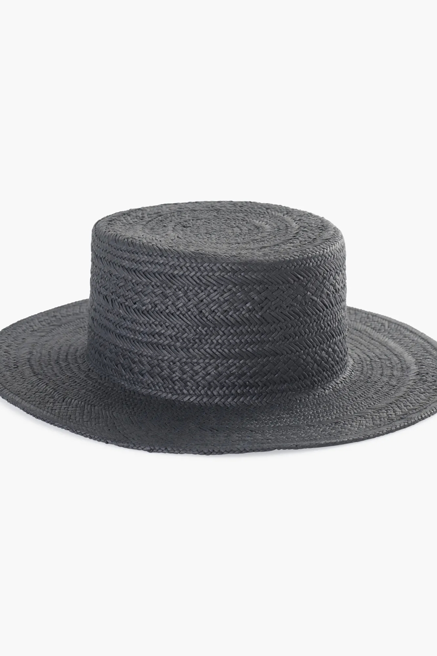black flat top boater hat