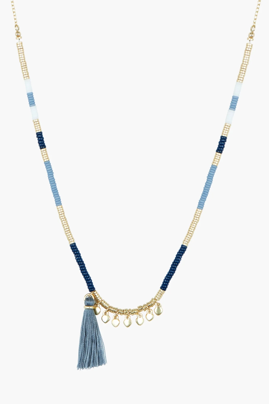 blue and gold beaded necklace