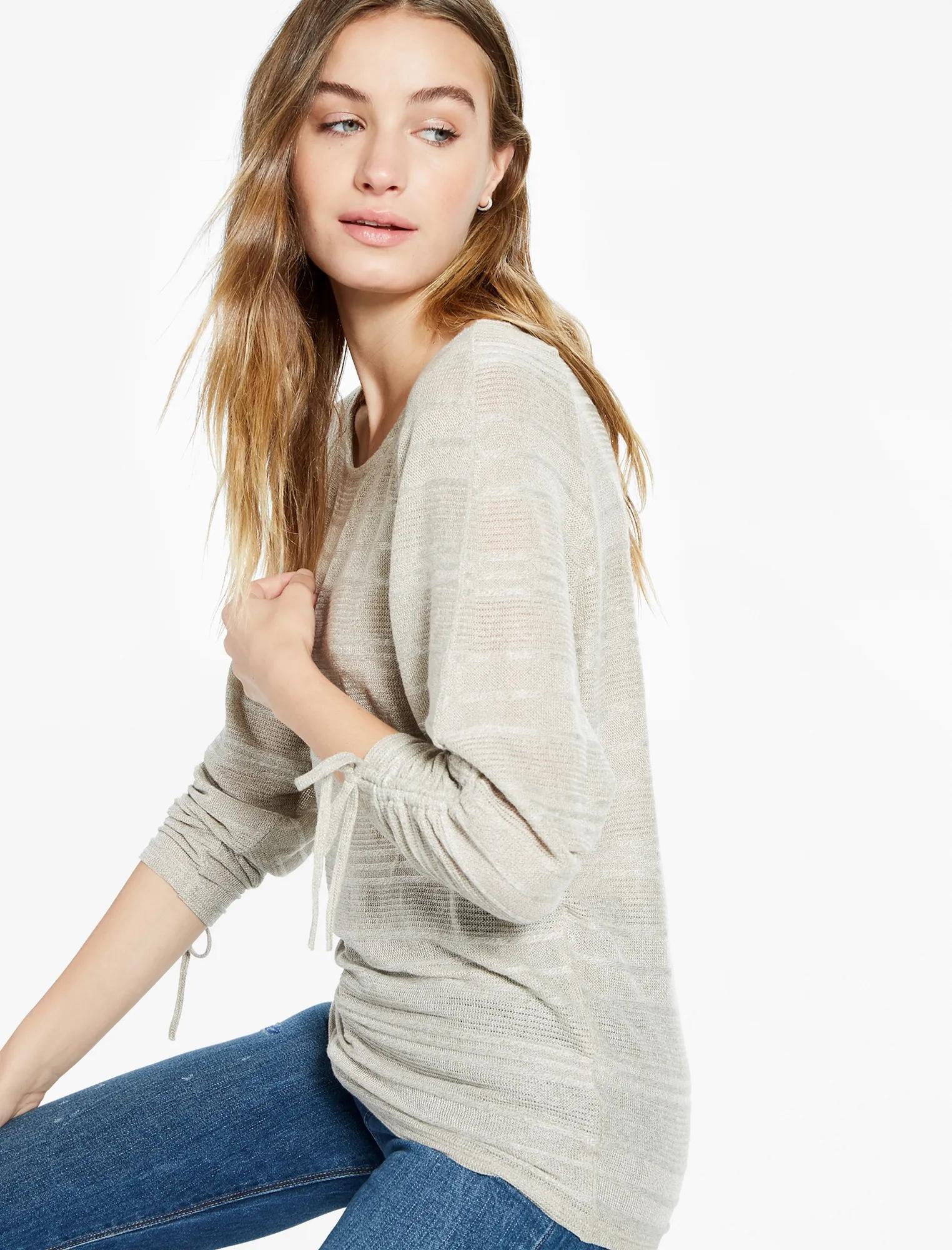 boat neck ruched sleeve top