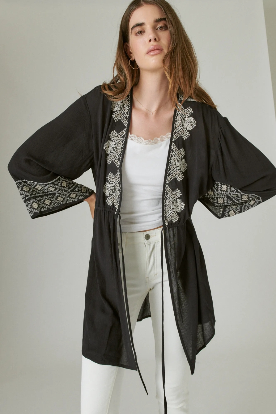 boho embroidered waist-tie kimono