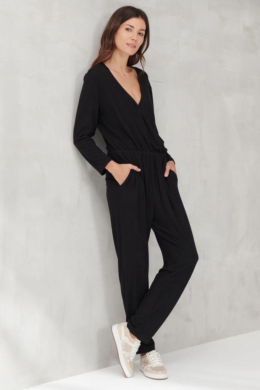 brushed hacci v neck jumpsuit