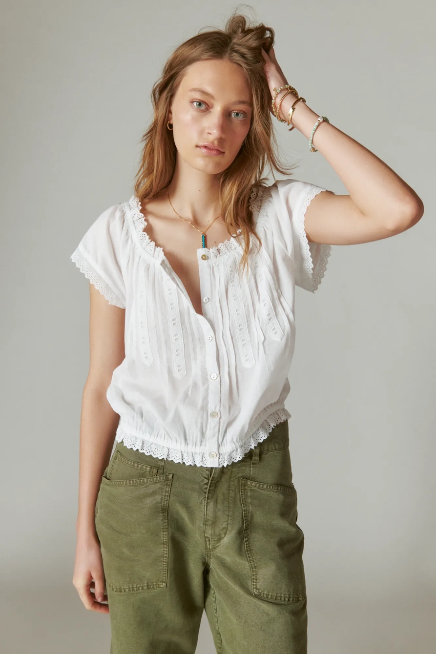 button front peasant top