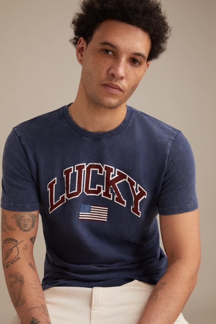 Embrace the spirit of freedom with Lucky Brand's Americana collection. Our patriotic clothing line features iconic red, white, and blue designs that celebrate American heritage with authentic Lucky style. From casual flag-inspired t-shirts to premium denim with stars and stripes accents, our Americana pieces blend national pride with the laid-back, vintage-inspired aesthetic Lucky Brand is known for. Each garment is crafted with attention to quality and comfort, ensuring you can showcase your patriotic spirit while enjoying Lucky's signature lived-in feel.