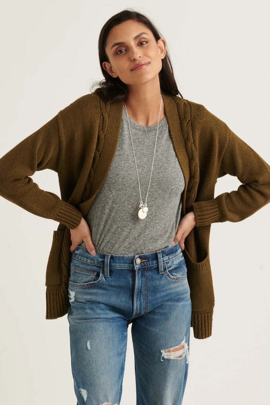 cable front cardigan