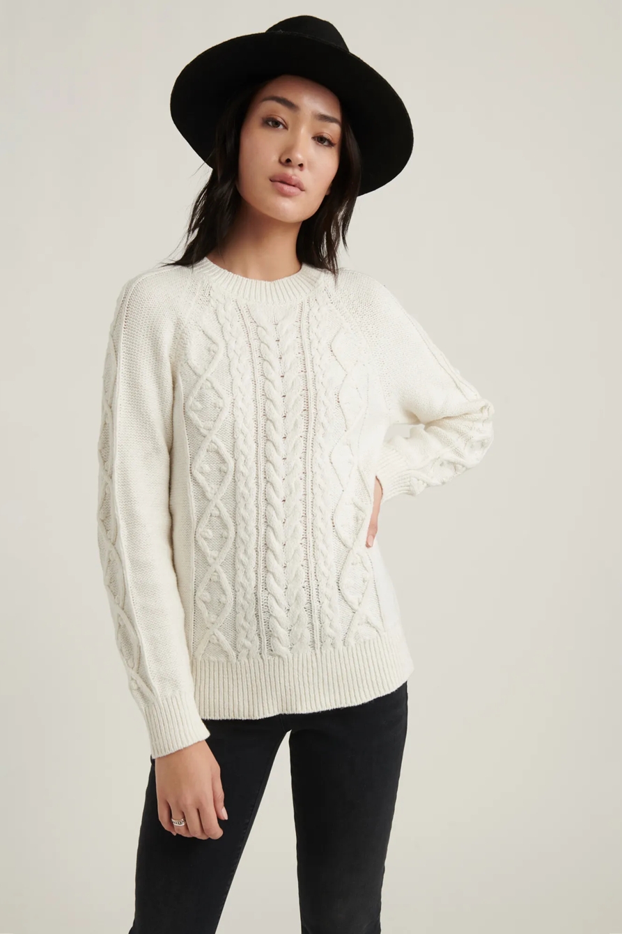 cable knit crew neck sweater