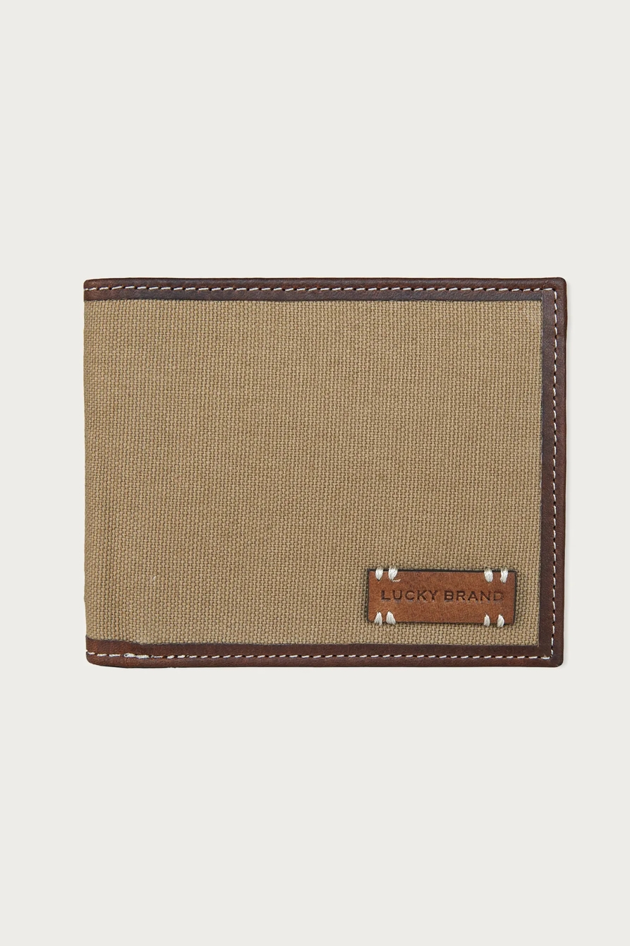 canvas with leather trim bifold wallet