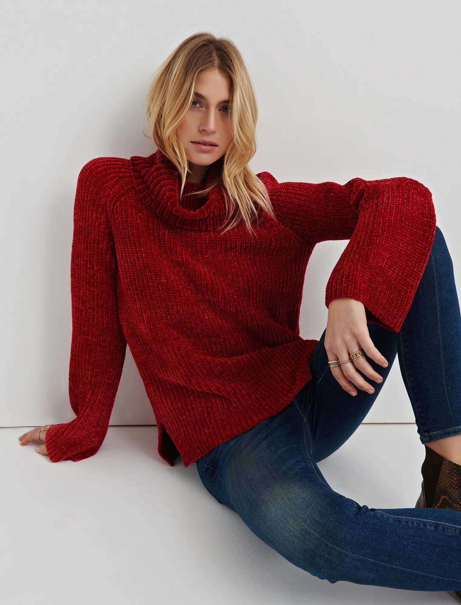 chenille cowl neck sweater