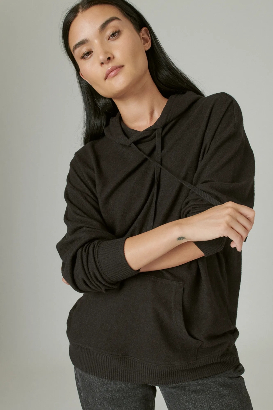 cloud jersey ribbed trim hoodie