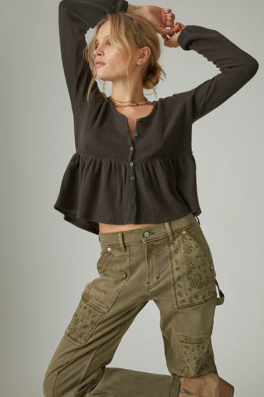 cloud jersey waffle button thru top