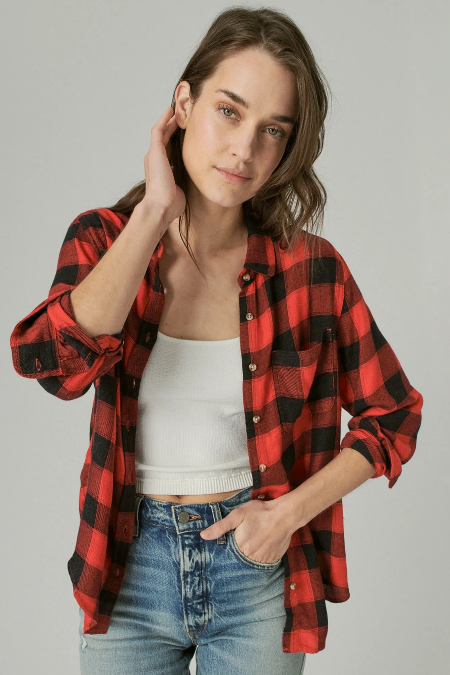 cloud plaid boyfriend button up shirt