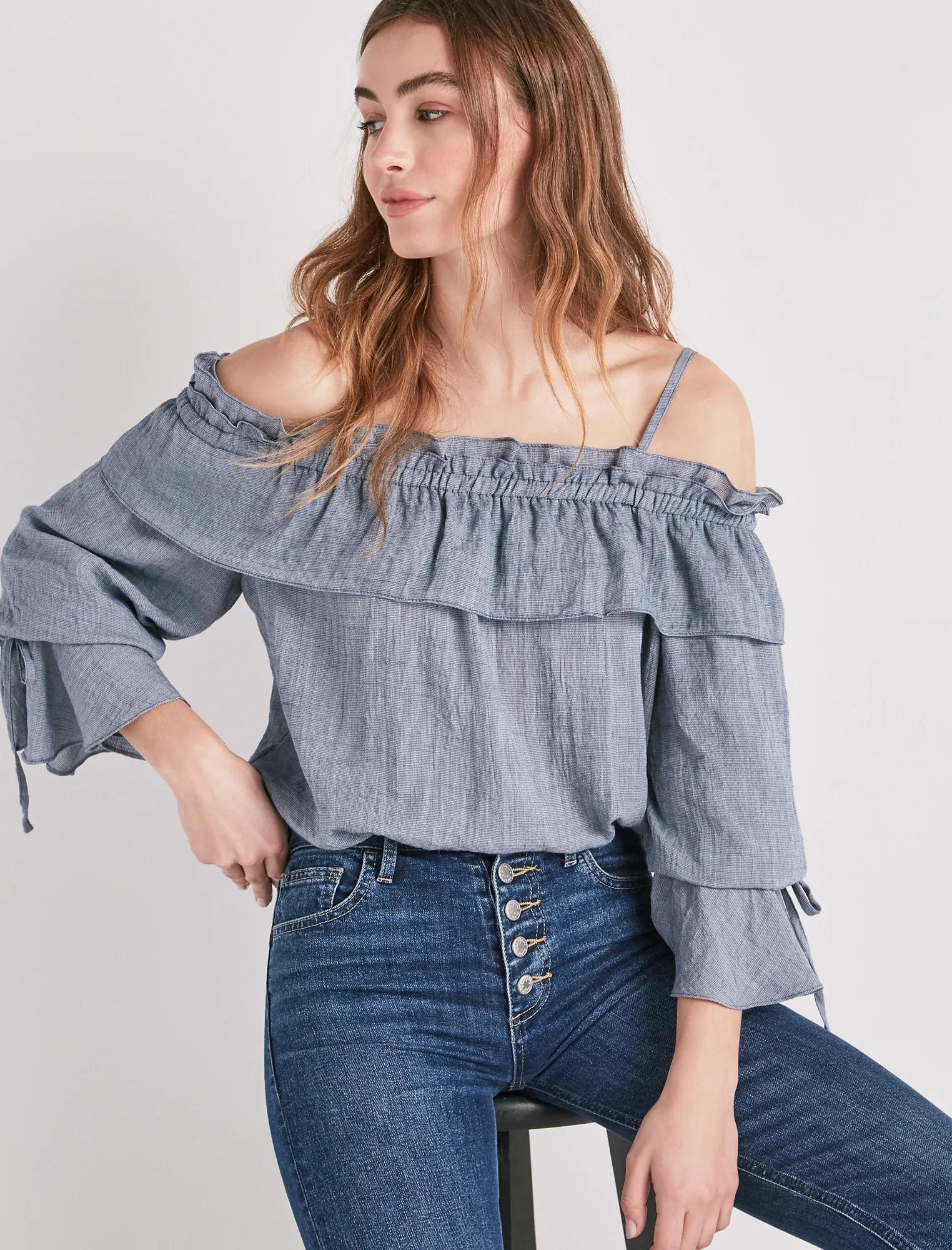 cold shoulder chambray top