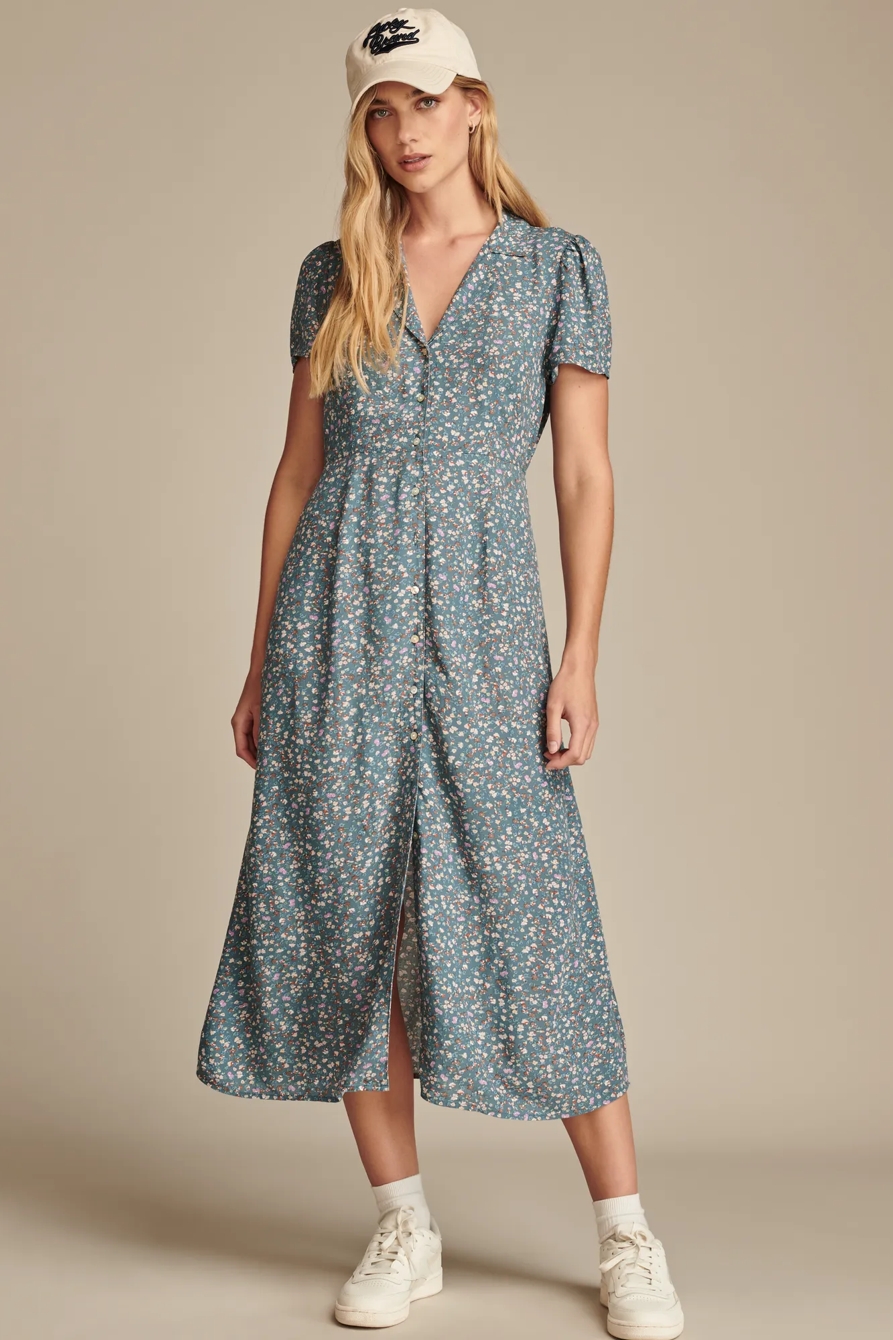 collared button through midi dress