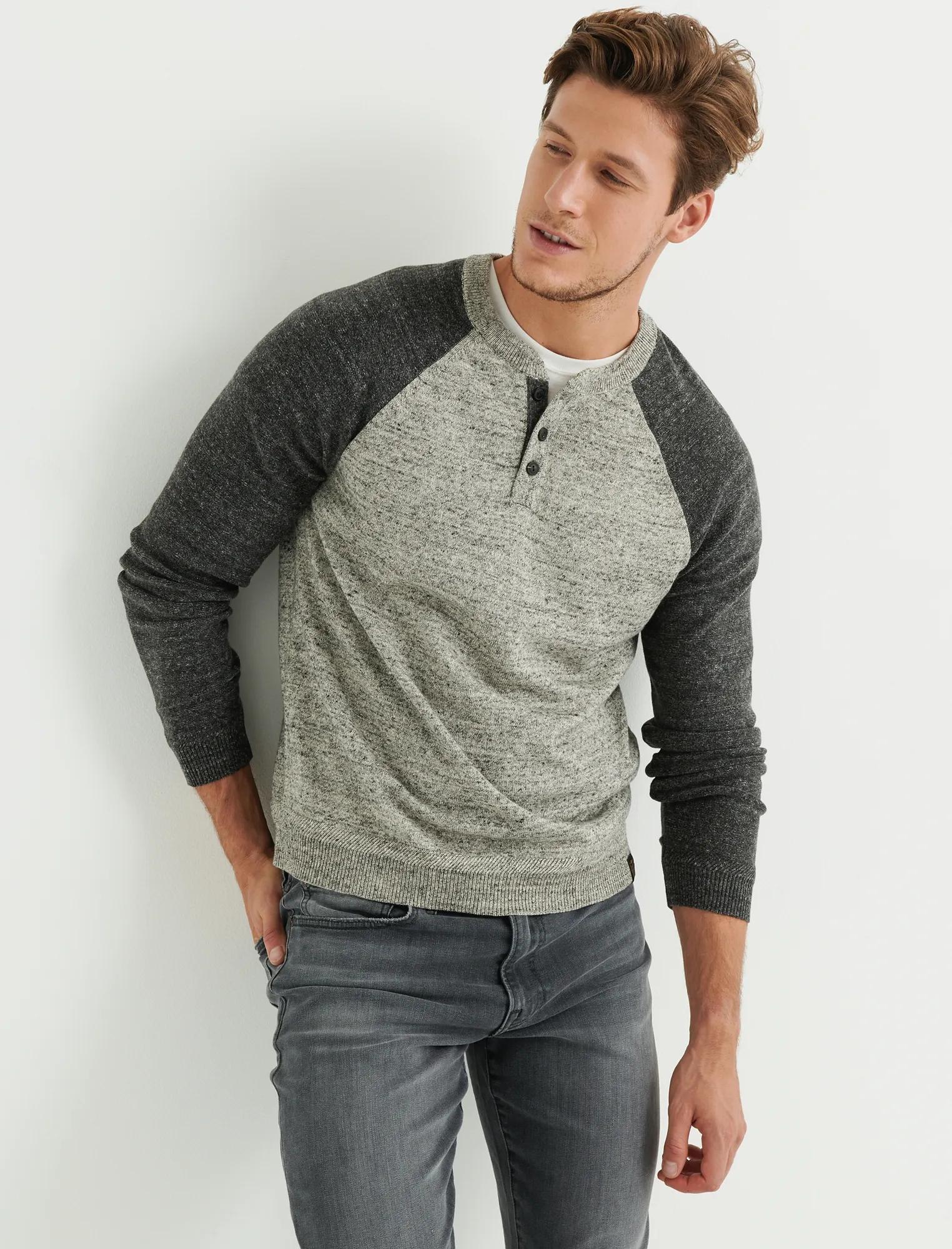 color block henley sweater