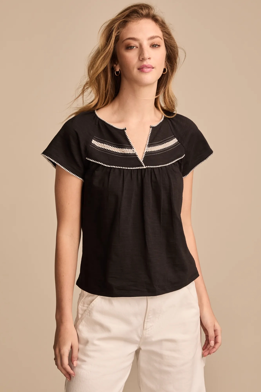 contrast trim short sleeve peasant top