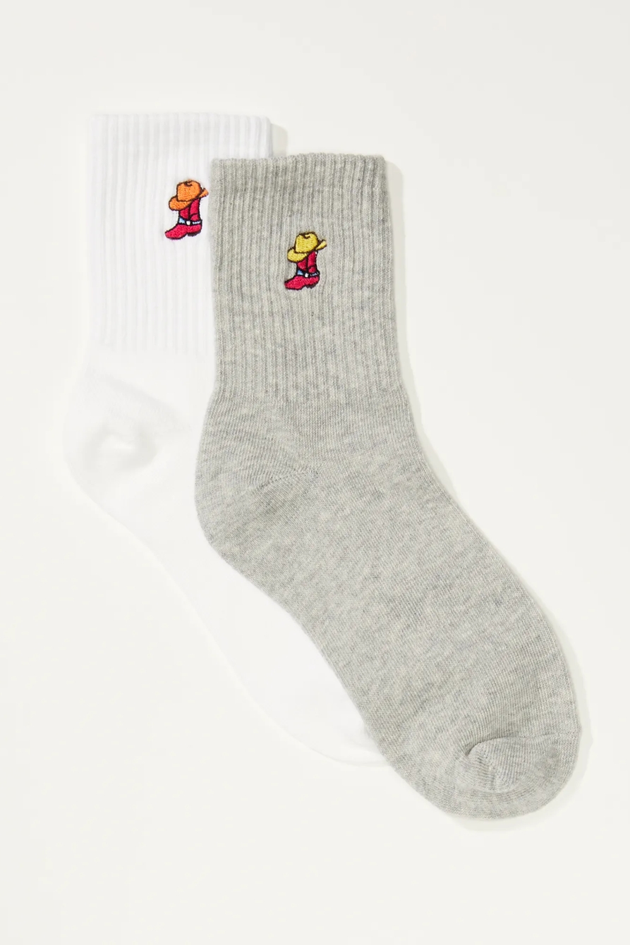cowboy boot embroidered sock 2 pk