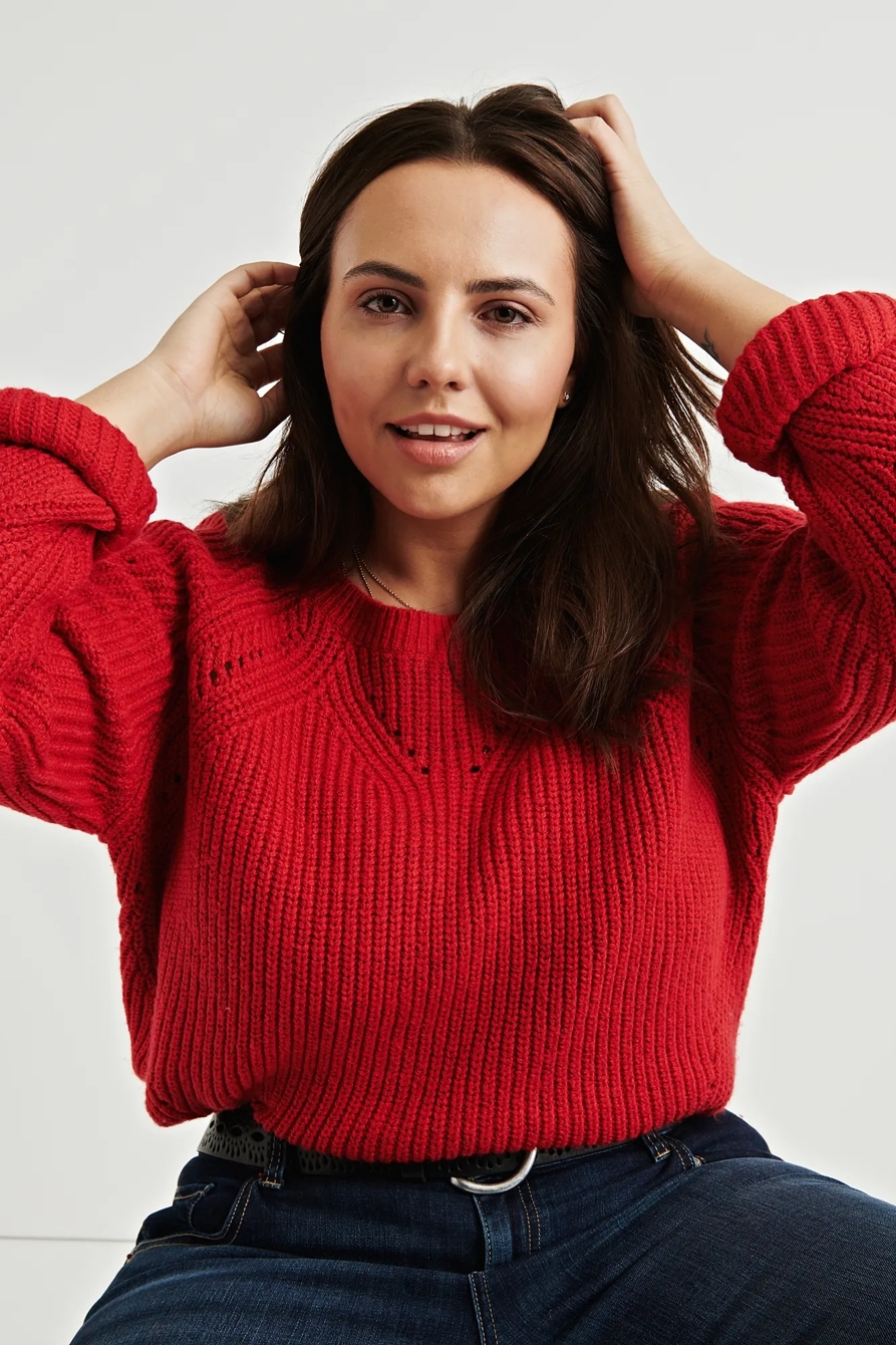 crew neck pointelle sweater