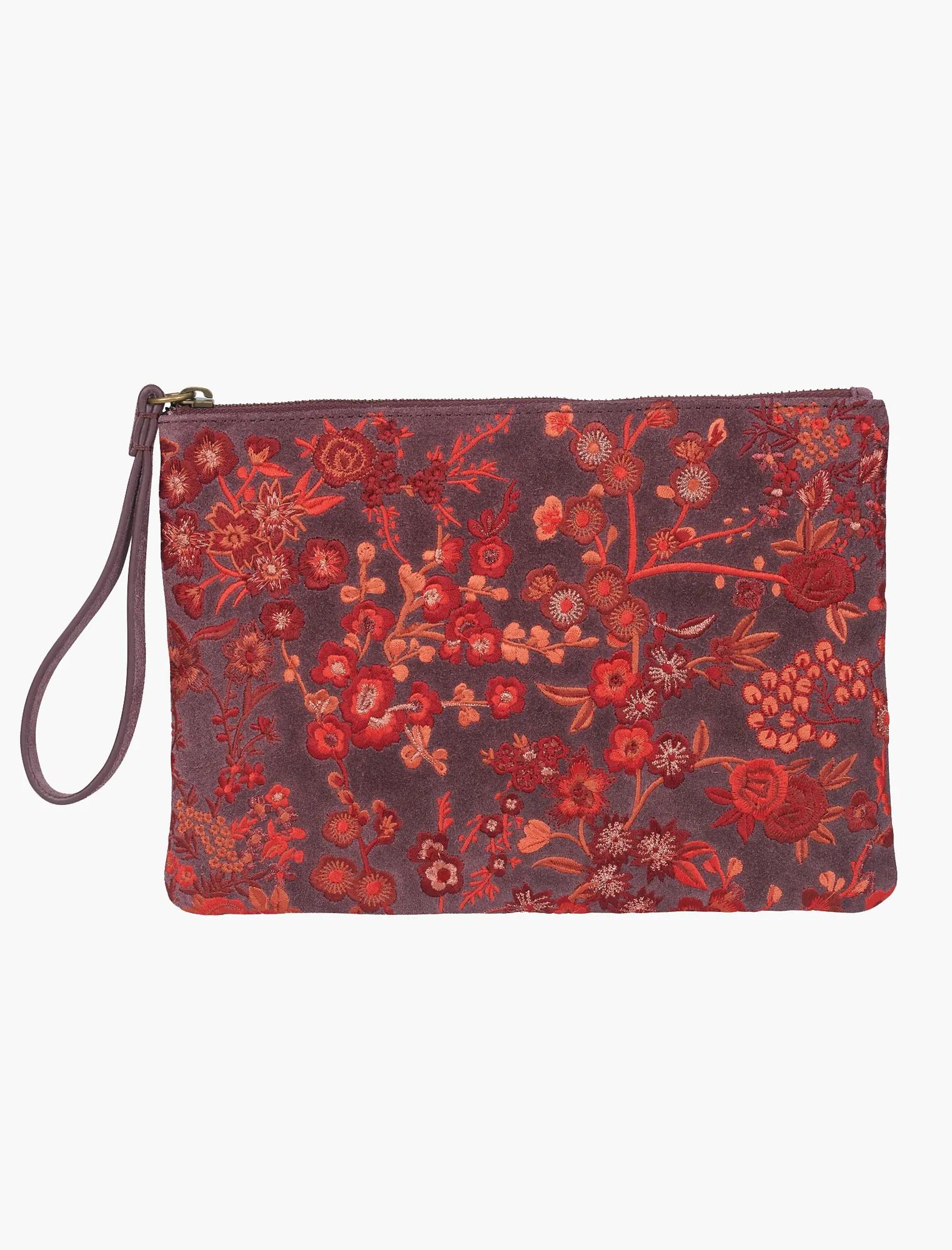 crimson floral embroideried pouch