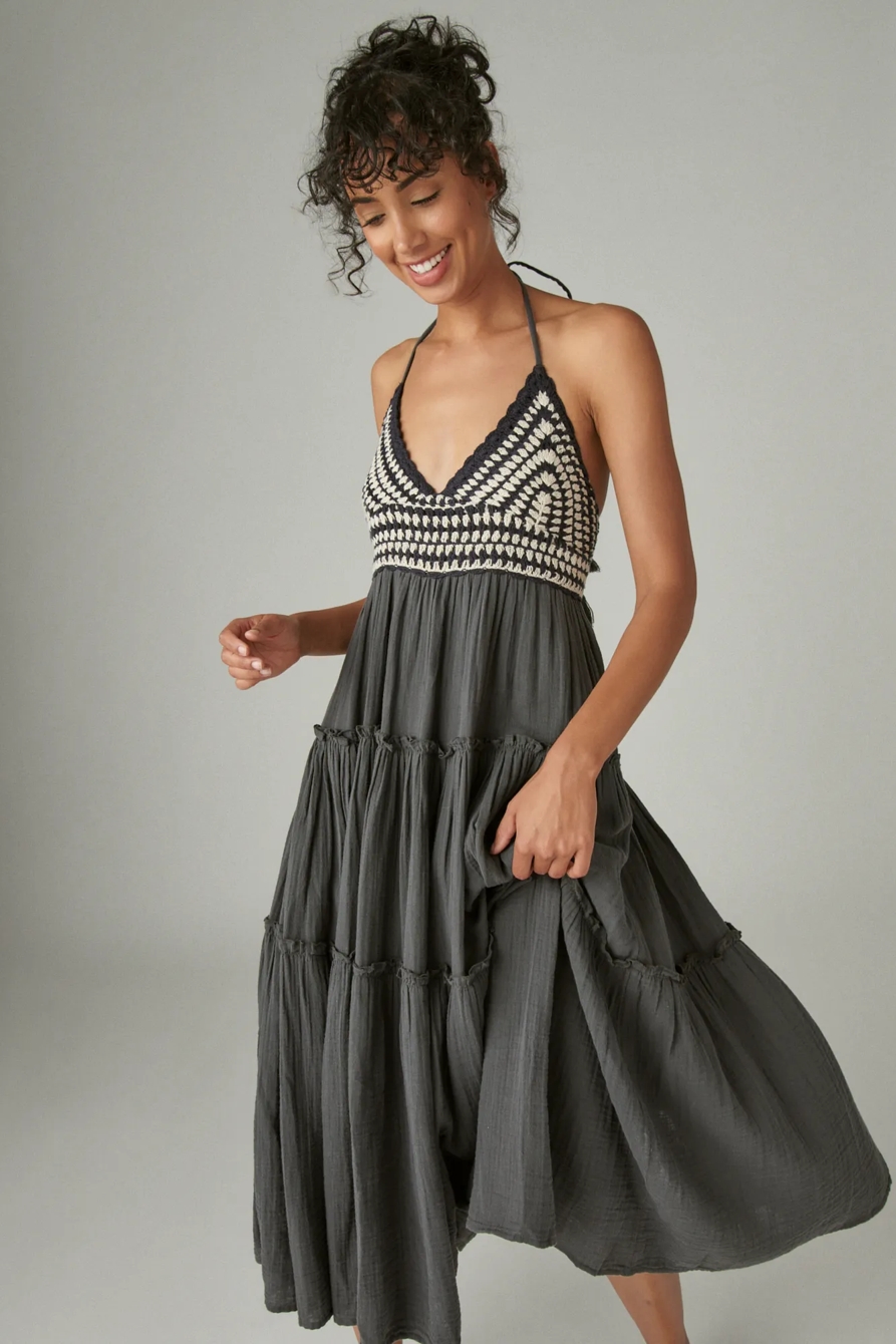 crochet trim maxi dress