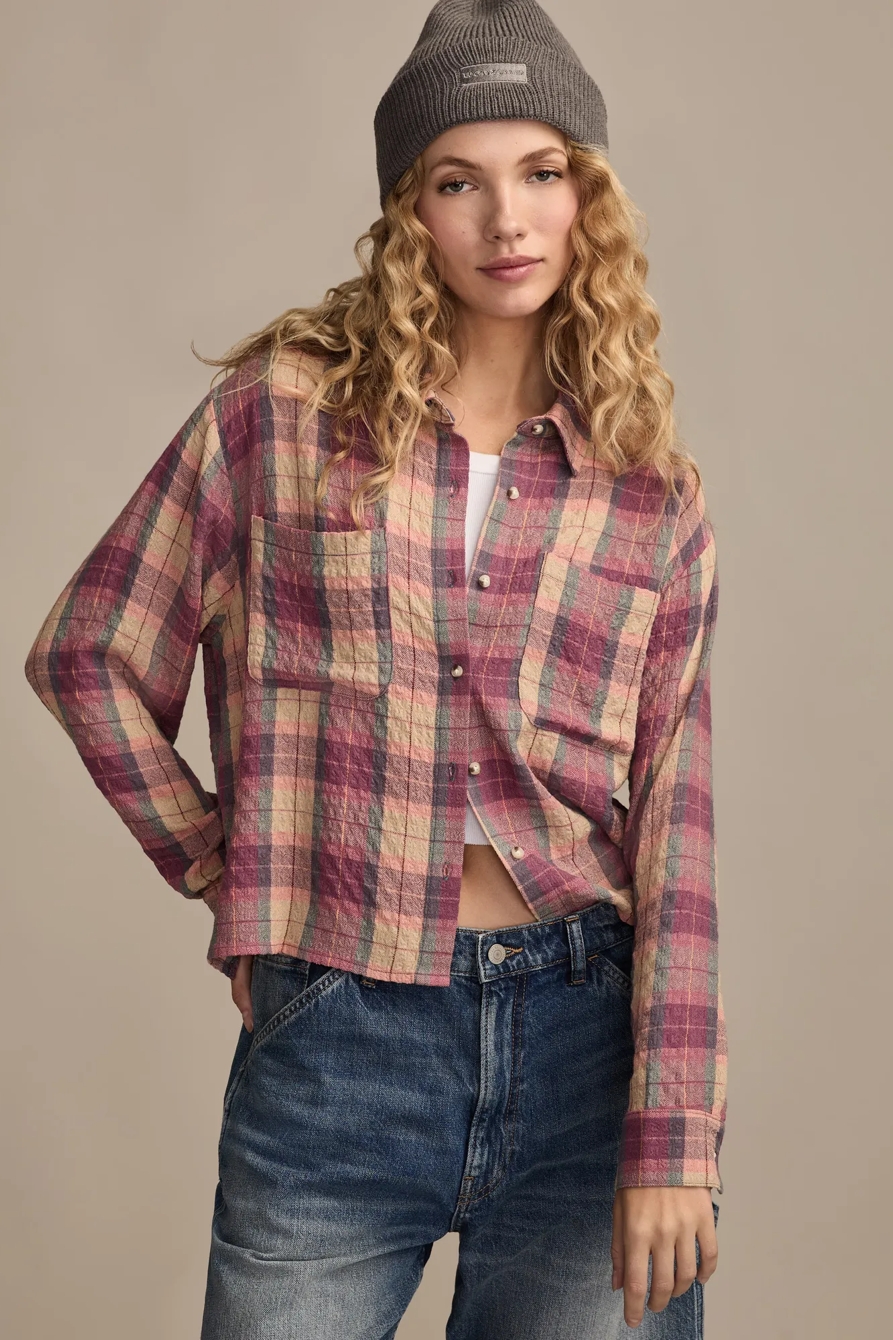 cropped plaid drapey shirt