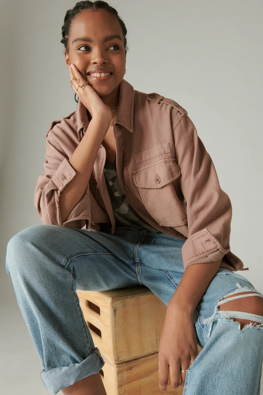 cropped twill utility jacket