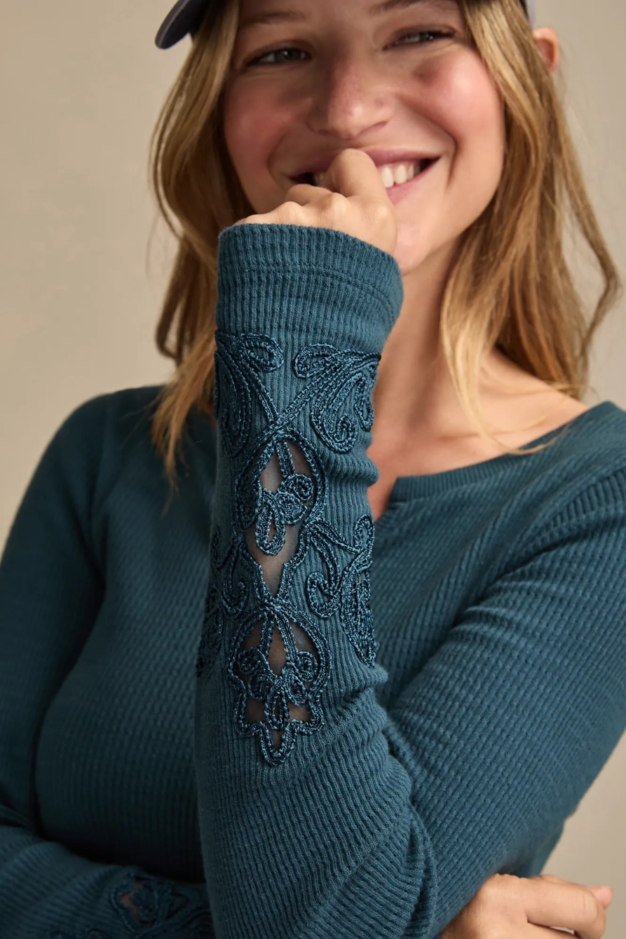 cutwork notch neck top