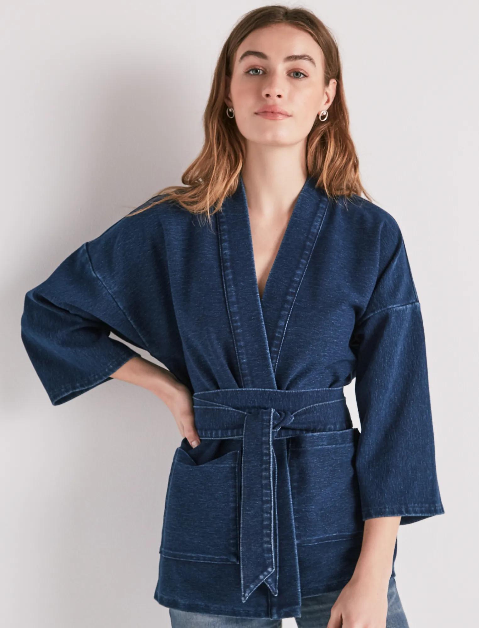 dark knit denim kimono wrap jacket