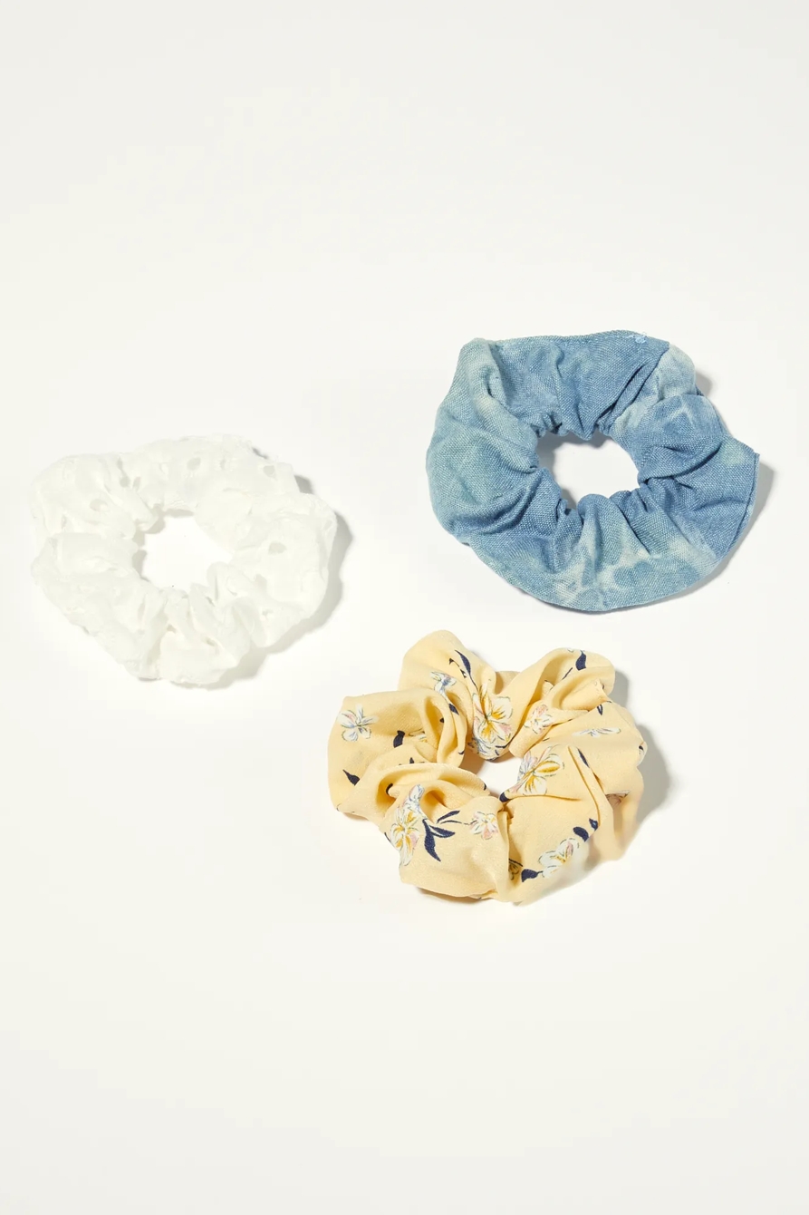denim floral scrunchie 3 pk