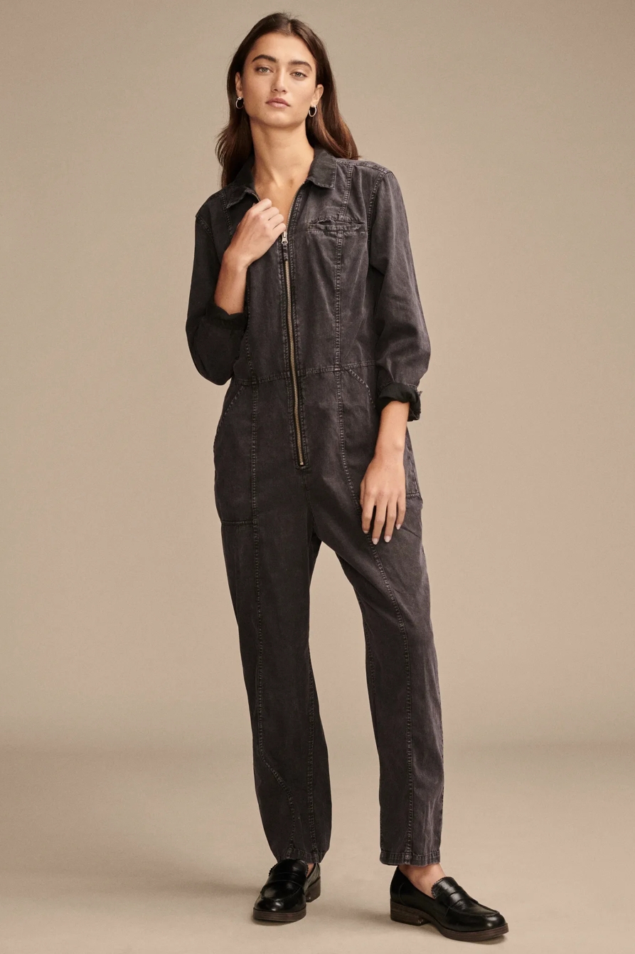 denim long sleeve jumpsuit