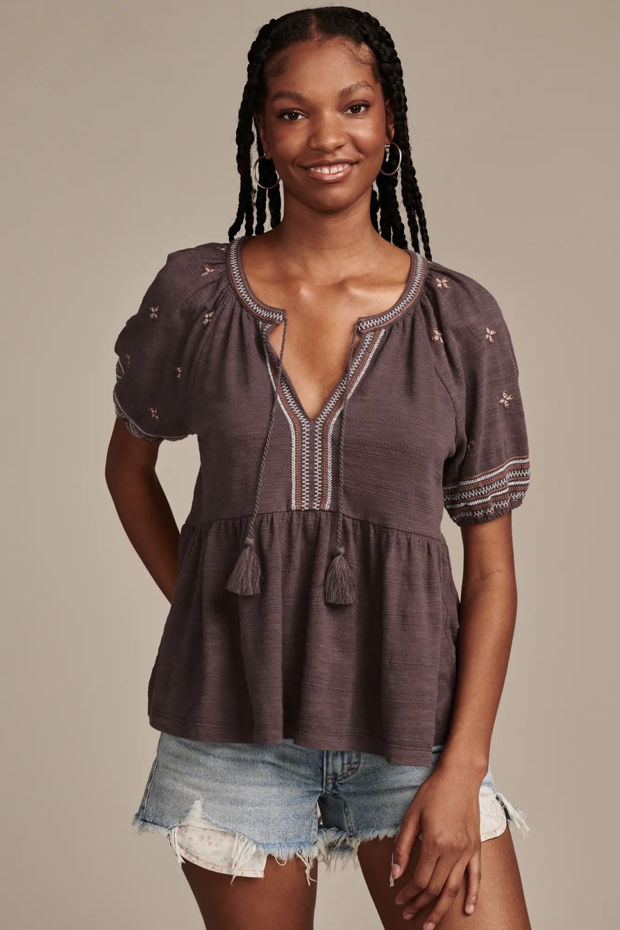 easy embroidered babydoll top