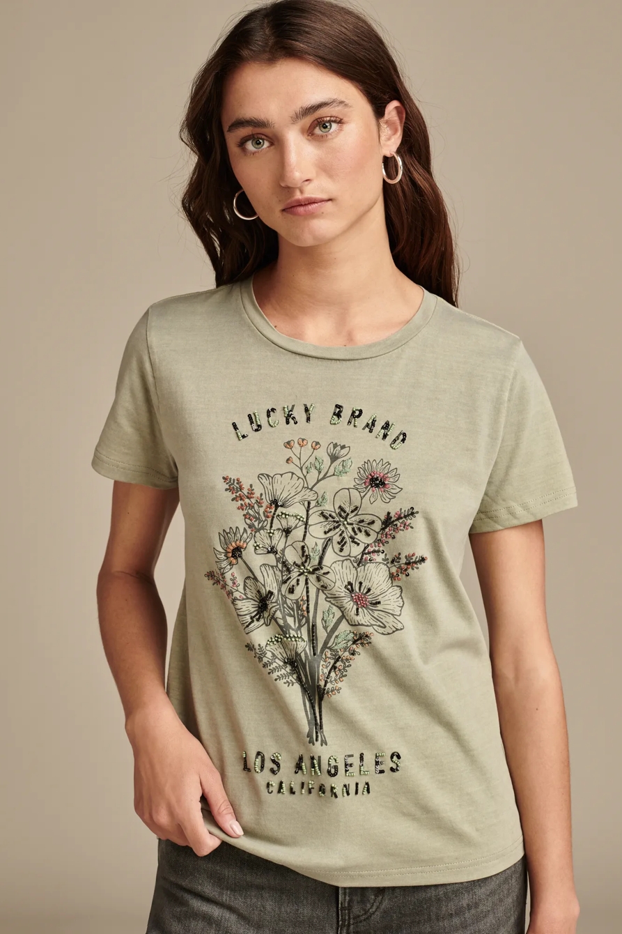 embellished floral classic crew