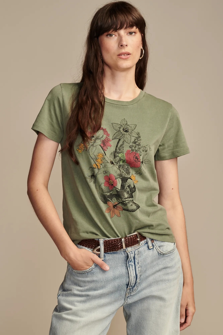 embellished floral skull classic crew