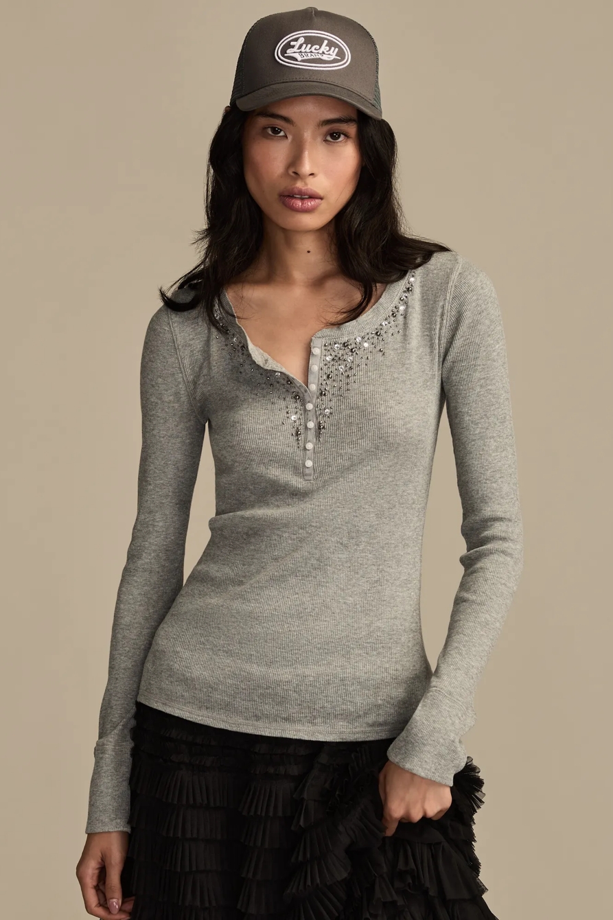 embellished henley top