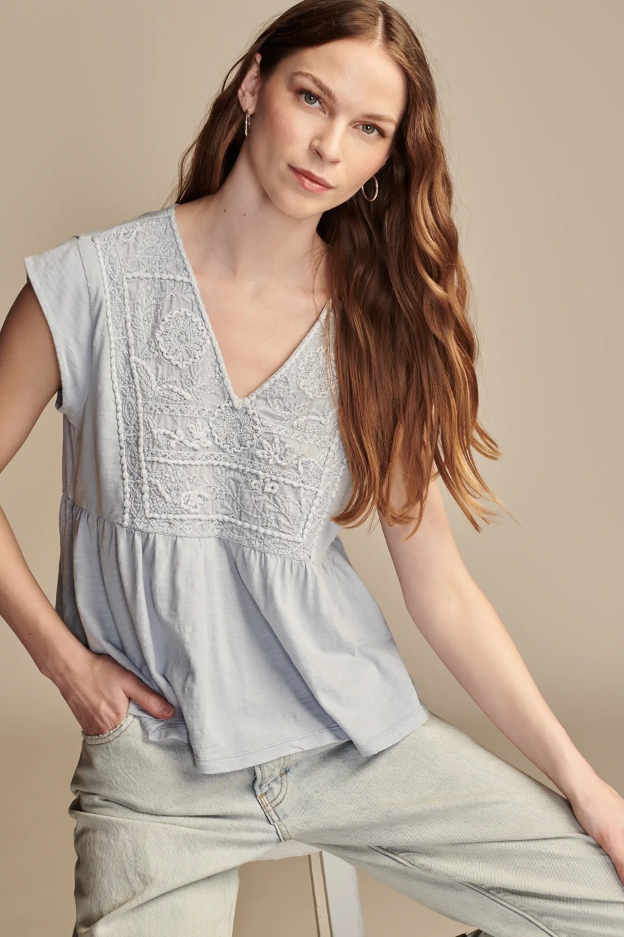 embroidered baby doll top