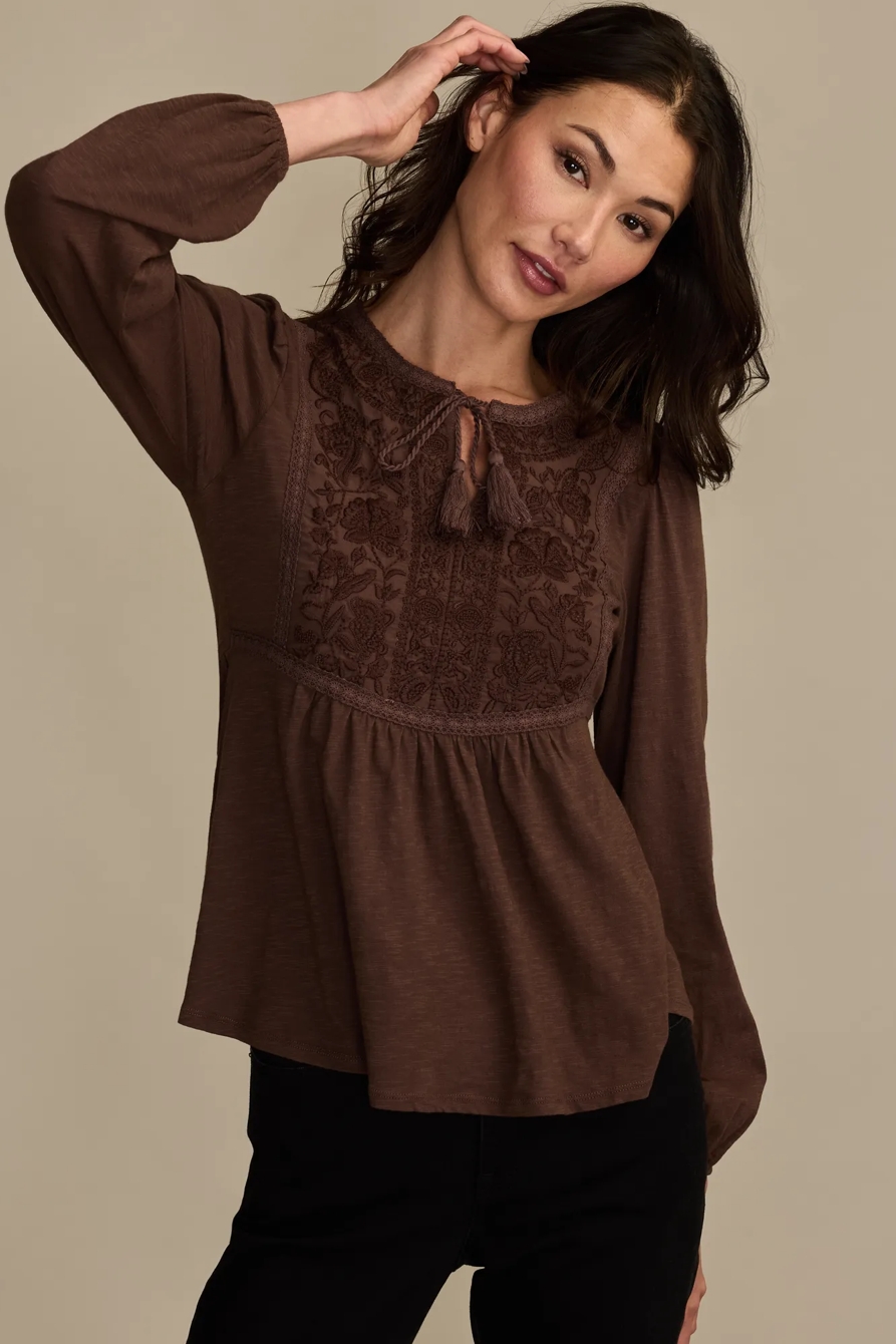 embroidered bib peasant top