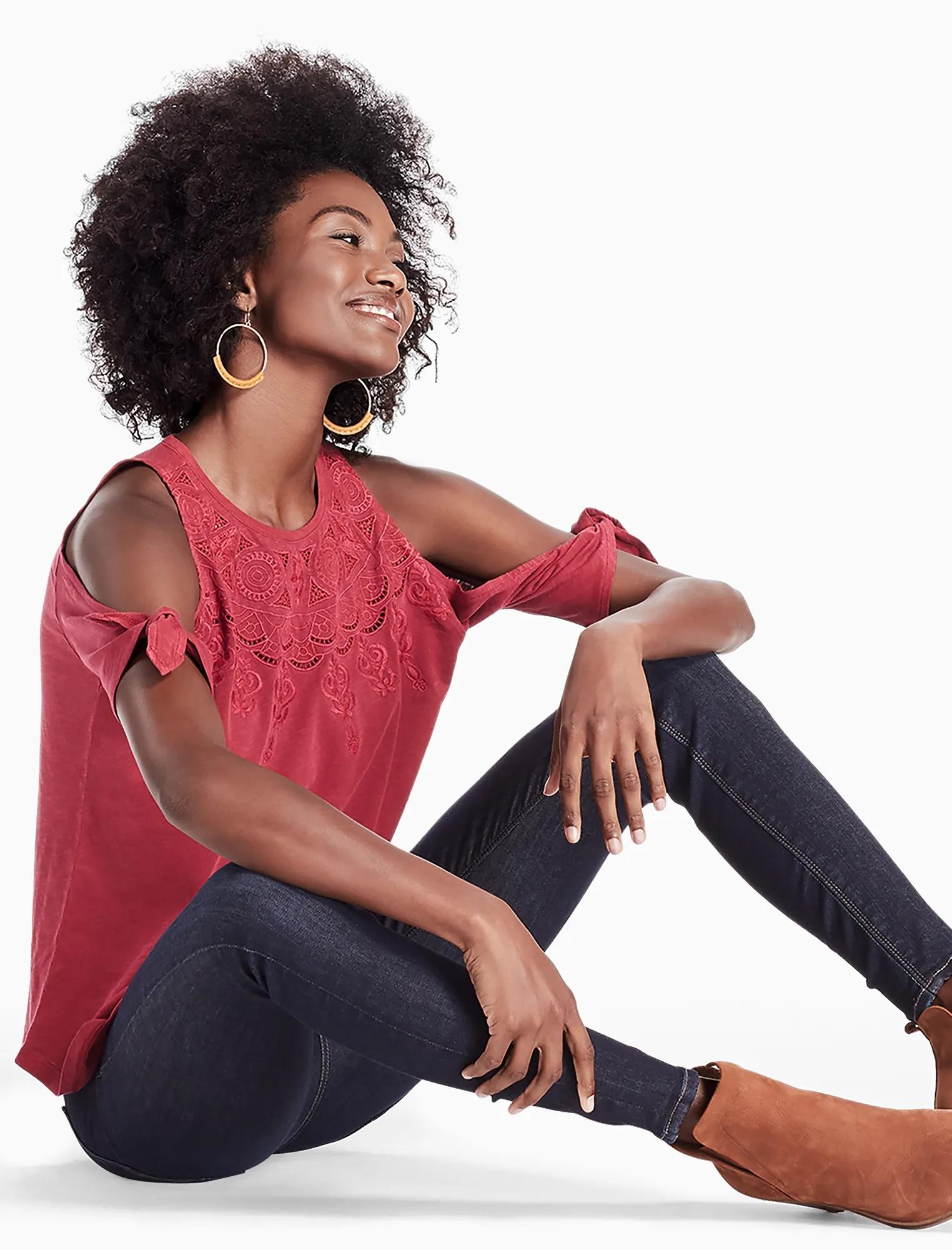 embroidered cold shoulder top
