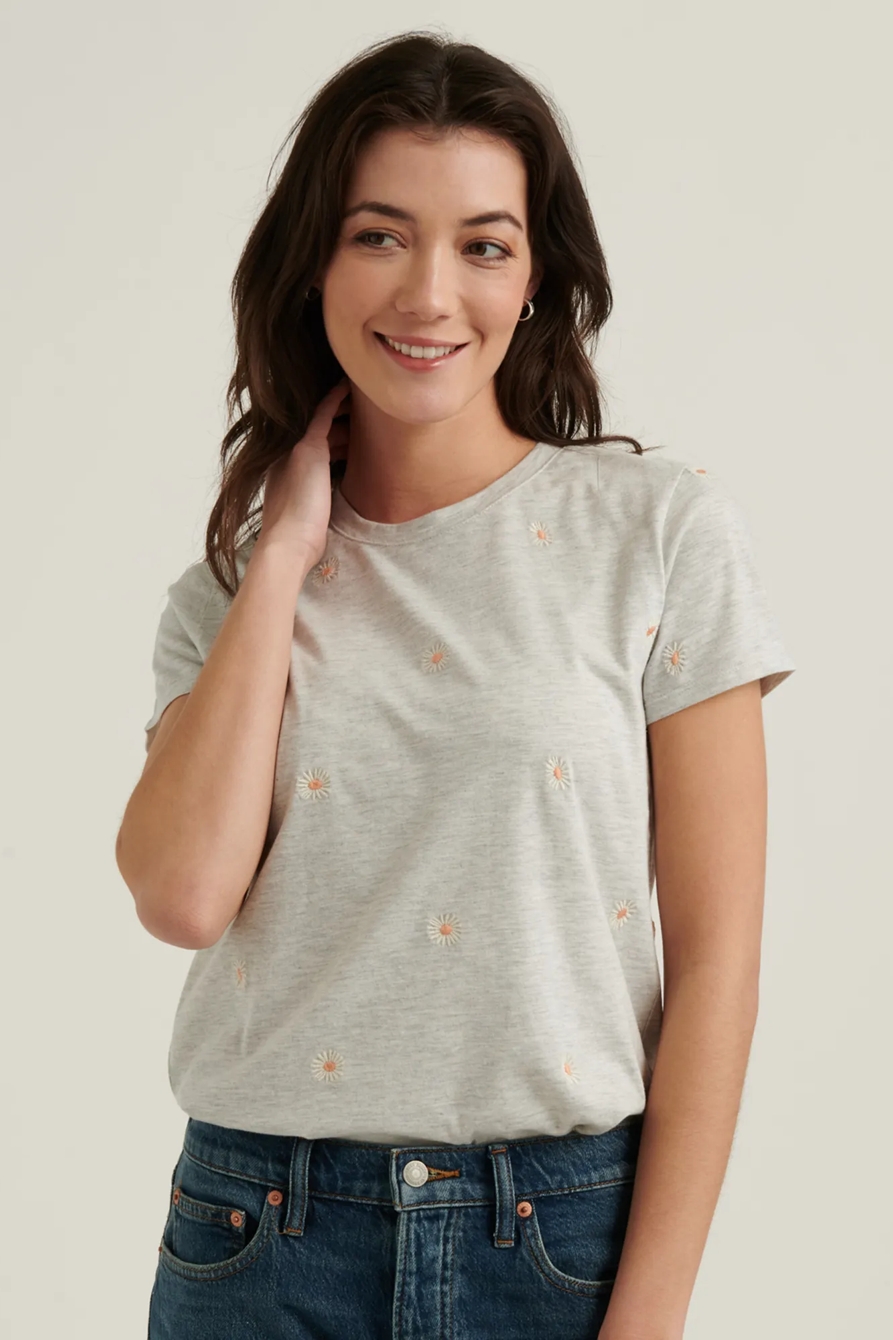embroidered daisy crew neck tee