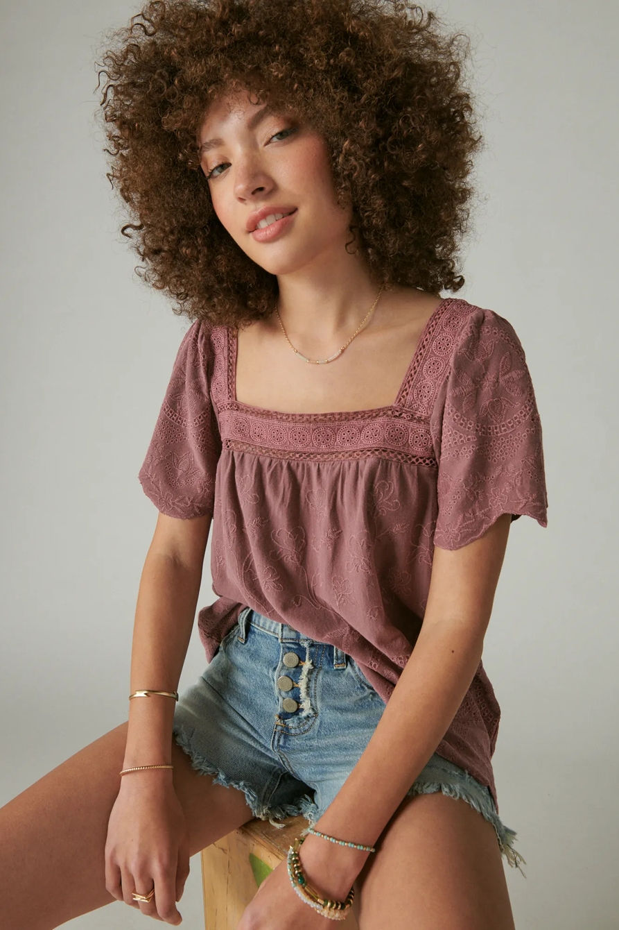 embroidered flutter sleeve top