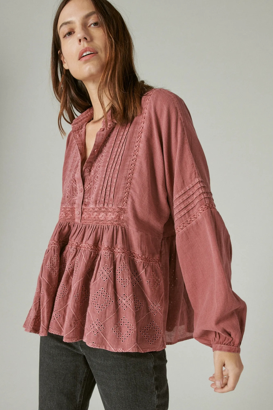 embroidered long sleeve button down top