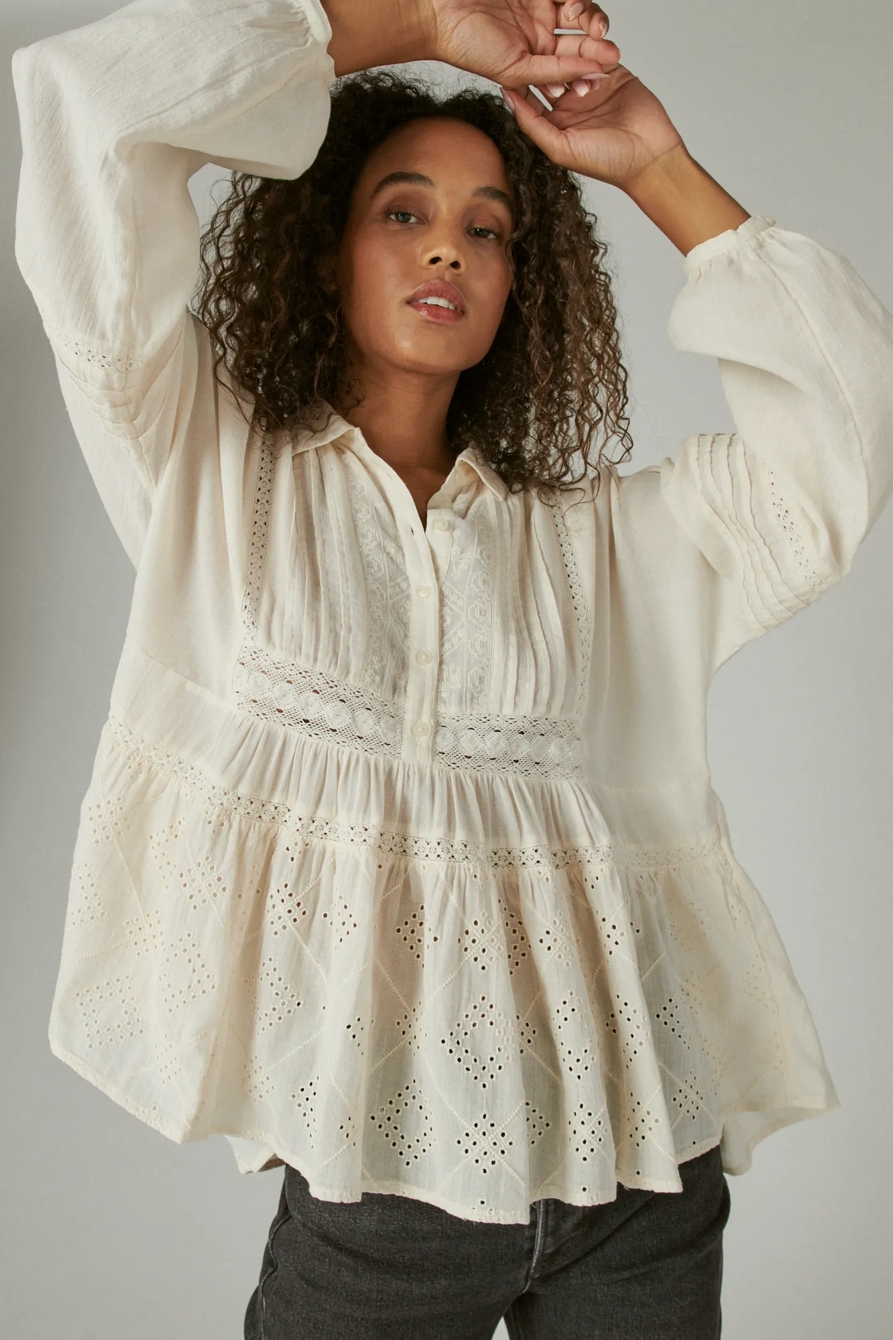 embroidered long sleeve button down top