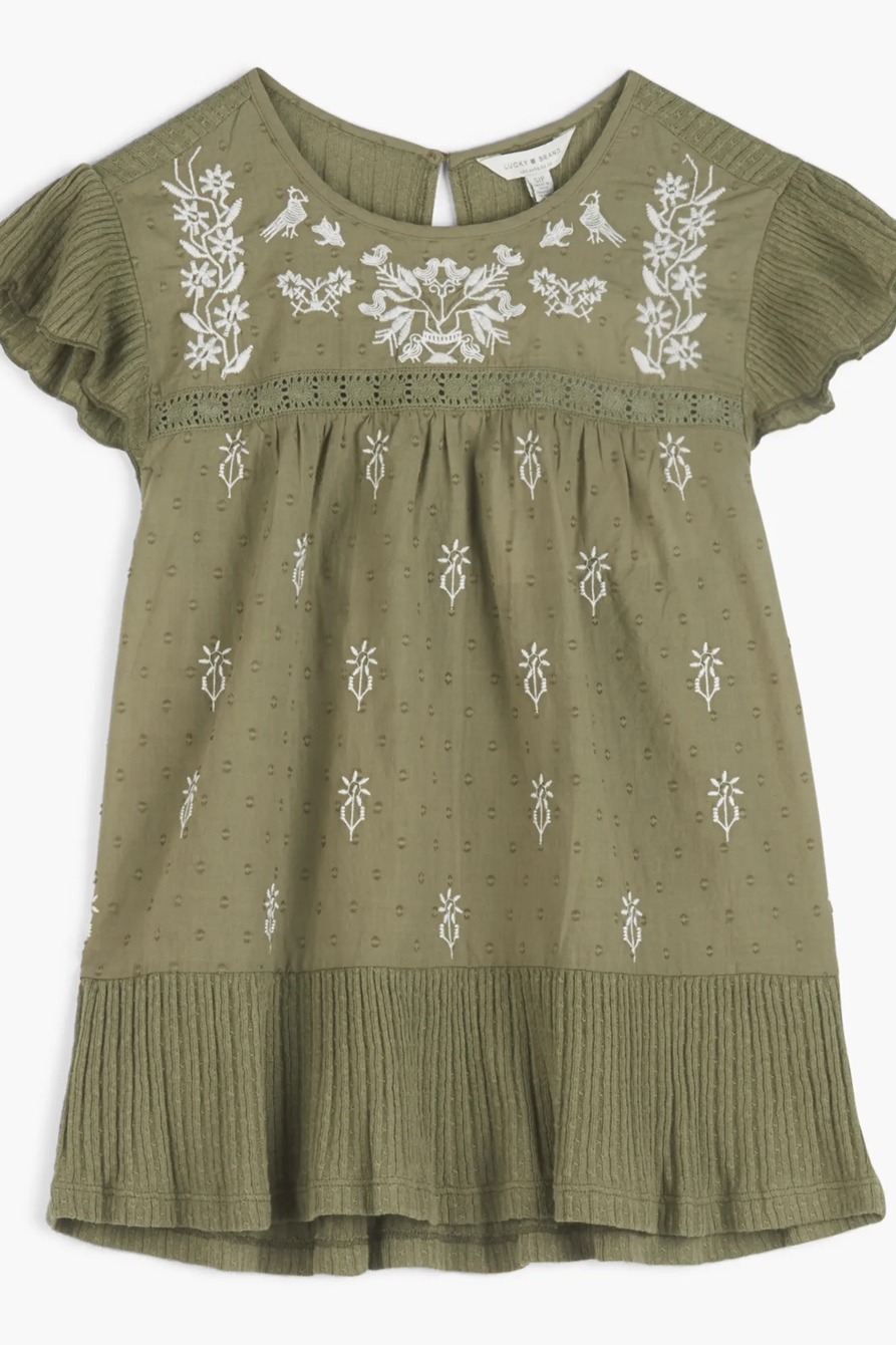 embroidered ruffle sleeve top