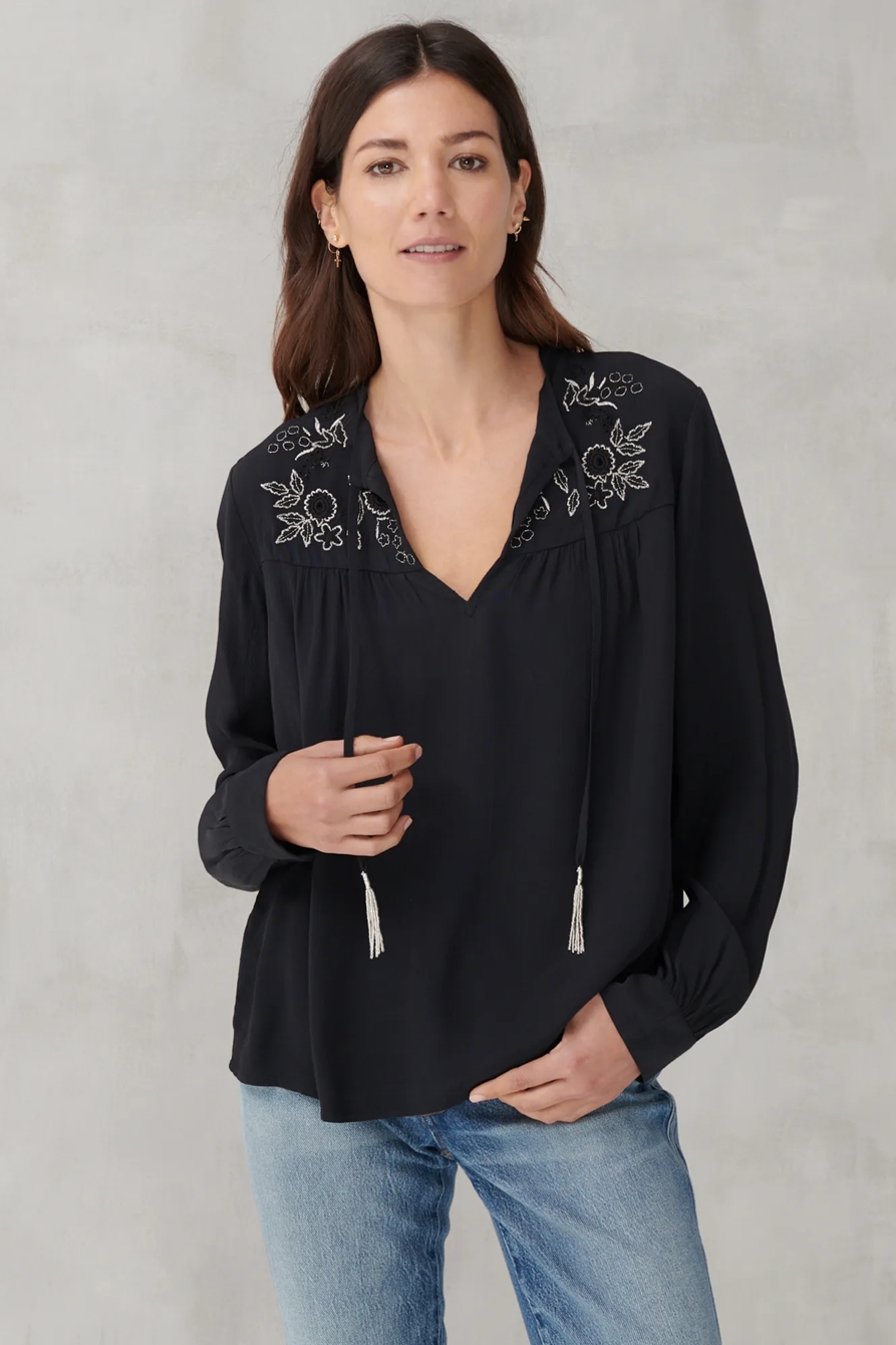 embroidered shine peasant top